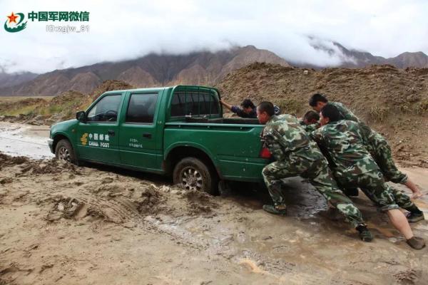 青藏線(xiàn)官兵幫助葛軍推車(chē)。