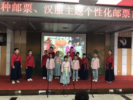 桂林站活動中,來自《桂林晚報》親子樂園的小朋友朗誦了《詩經(jīng)》選段,廣西師范大學(xué)藝術(shù)團用優(yōu)美的舞蹈詮釋了《詩經(jīng)》中的《采薇》詩篇。桂林高校漢服聯(lián)盟禮儀隊對漢服主題個性化郵票上的漢服進行了精彩演繹,在演繹過程中,源漢漢文化生活館創(chuàng)始人對個性化郵票上的漢服進行了解說。他們精彩的朗誦和表演贏得了與會者的掌聲,整個活動氣氛活潑、熱烈。