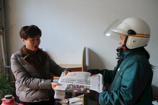 全國兩會期間,為方便廣大用戶和人民群眾更好地了解兩會消息,山東省茌平縣郵政分公司城區(qū)投遞部投遞員徐紅,每天早早地就等候在投遞部,報紙一分揀完畢,她便騎上車出發(fā)投遞?!澳銈儊淼谜婕皶r,我這就把報紙分發(fā)下去。”茌平縣委黨校傳達室的工作人員如是說。據(jù)了解,兩會期間,徐紅每天投遞《人民日報》等黨報100余份?!鯊埮喾f 攝影報道