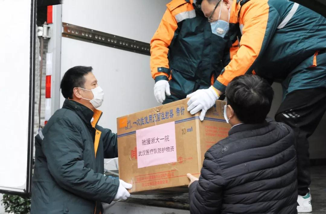 2月6日下午,一輛郵車(chē)開(kāi)進(jìn)了浙江大學(xué)醫(yī)學(xué)院附屬第一醫(yī)院,停在了17號(hào)樓前,郵政和醫(yī)院雙方的工作人員冒著淅瀝的小雨小心翼翼地將裝著醫(yī)療耗材的一個(gè)個(gè)大箱子搬進(jìn)車(chē)廂。浙江省郵政分公司黨委書(shū)記、總經(jīng)理陳清,浙大一院常務(wù)副院長(zhǎng)裘云慶、黨委副書(shū)記邵浙新均到達(dá)了現(xiàn)場(chǎng)。