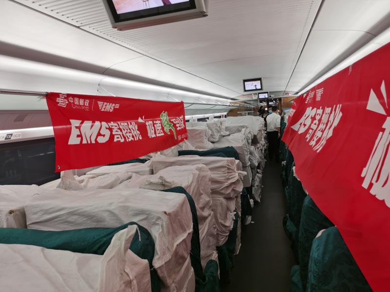 25日上午10點10分,煙臺郵政首批1870箱、4900公斤大櫻桃經(jīng)過預(yù)冷包裝,整齊碼放在高鐵車廂內(nèi),乘坐開往長沙的“郵路”駛出煙臺火車站,最快將在當(dāng)晚出現(xiàn)在湖南長沙人的餐桌上。