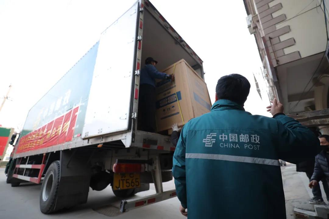 在救治工作最艱難的2月,火神山醫(yī)院和雷神山醫(yī)院日夜搶救病患。病房外,無數郵政員工日夜穿梭在醫(yī)院配送醫(yī)療物資,綠色的身影守護著生的希望。1750臺平板電腦、800個平板支架、700個自動洗手套裝、610部對講機、600個體溫計……2月4日,武漢郵政接到小米公司捐贈物資的信息,立刻緊急調用了各類車輛,大到8噸郵車、4.2米廂式車,小到面包車,甚至小拖車。從小米公司到火神山醫(yī)院單程需要50公里,郵車進不去,心急如焚的郵政員工們就用小拖車一趟趟拉、用肩膀一箱箱扛、用胳膊一袋袋抱,最長的一次步行是在泥濘中走了3公里……