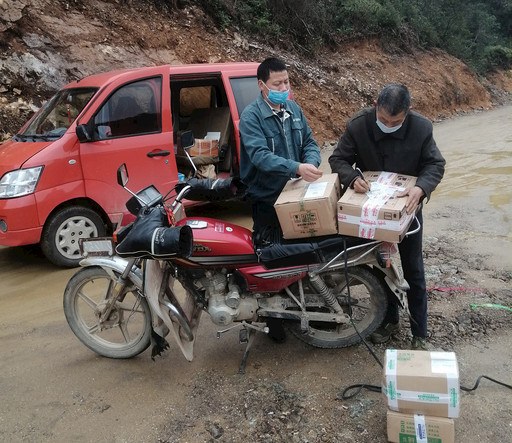 用戶在疫情檢測點(diǎn)簽收包裹。