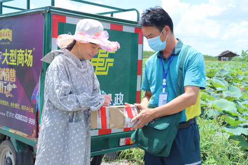 7月22日,是我國農(nóng)歷的大暑節(jié)氣。近日,廣西壯族自治區(qū)貴港市氣溫持續(xù)攀升,最高溫度達(dá)37攝氏度。為了把郵件及時(shí)、快速、準(zhǔn)確地送到群眾手中,郵政員工在炎炎烈日下,電話不離手,腿腳不停歇,確保郵件安全送達(dá)。圖為湛江鎮(zhèn)郵政支局投遞員到荷花田里送郵件?! 躐麞|新 攝影報(bào)道