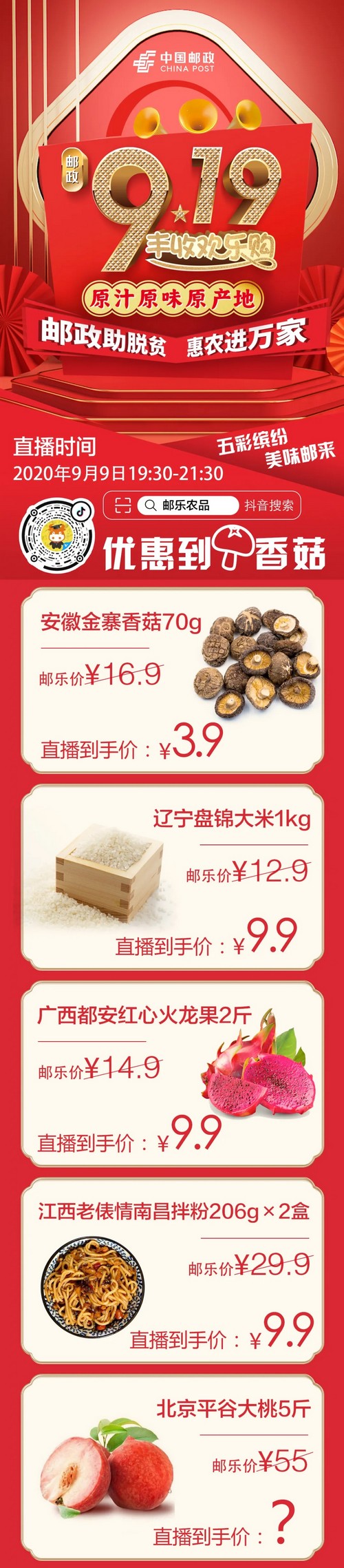 中國郵政919電商節(jié)首場(chǎng)預(yù)熱直播來啦!