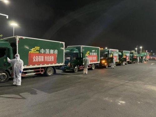 24日晚8點(diǎn),12輛郵政大貨車(chē)先后完成裝貨工作,由12名身穿防護(hù)服的郵政駕駛員啟程前往江寧區(qū)祿口街道辦事處及下轄?zhēng)讉€(gè)社區(qū)。