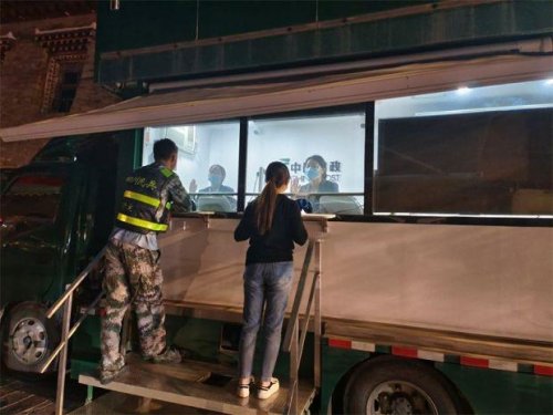 “網(wǎng)絡(luò)連上了,設(shè)備弄好了,燈亮起來(lái)了!”當(dāng)天16時(shí),經(jīng)過(guò)近2個(gè)小時(shí)趕路,流動(dòng)服務(wù)車(chē)開(kāi)到了磨西鎮(zhèn)貢嘎廣場(chǎng)。在甘孜州縣兩級(jí)應(yīng)急救災(zāi)指揮部、海螺溝管理局的幫助下,磨西郵政支局和趕來(lái)支援的甘孜州郵政分公司員工、電力公司技術(shù)員、消防官兵一起,迅速完成場(chǎng)地搭建和設(shè)備調(diào)試,為流動(dòng)服務(wù)車(chē)正式營(yíng)業(yè)做好了準(zhǔn)備。