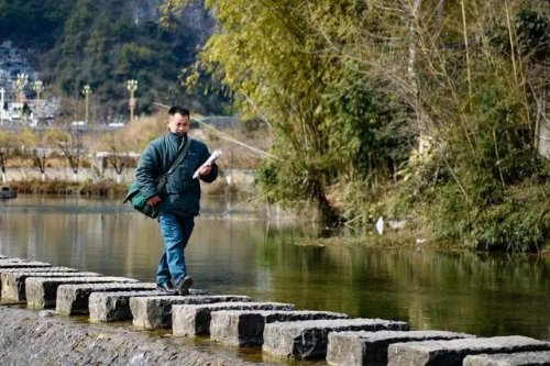 在貴州省龍山鎮(zhèn),莫富元準(zhǔn)備投遞郵報(2月14日攝)。