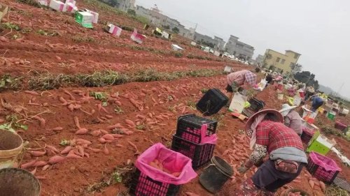 200公里外的湛江遂溪縣,番薯種植大戶鄧某雄的800畝“西瓜紅”番薯迎來(lái)豐收。此前,他因土地租金、農(nóng)資采購(gòu)等一度倍感壓力。