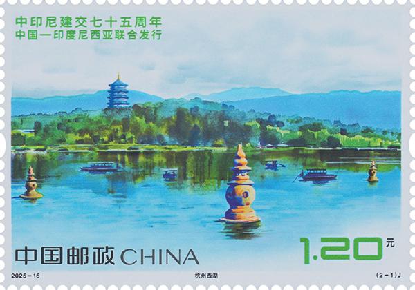 中國(guó)郵政定于8月30日發(fā)行《中印尼建交七十五周年》(與印度尼西亞聯(lián)合發(fā)行)紀(jì)念郵票一套兩枚,郵票圖案名稱(chēng)為:杭州西湖、布拉坦湖。
