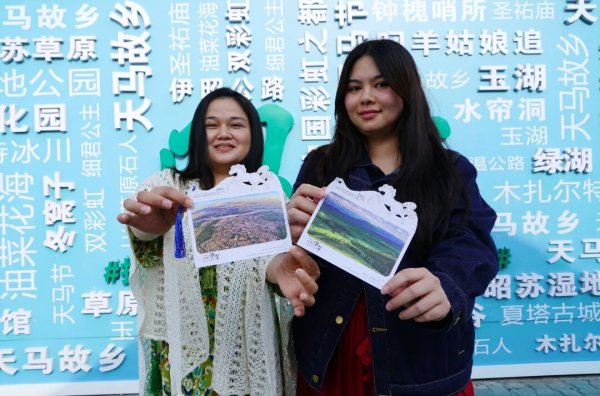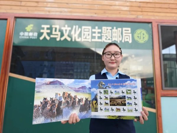 “馬上”郵局營(yíng)業(yè)員彩紅說(shuō):“我手里的這款明信片是異形明信片,明信片上是伊犁風(fēng)光,有天馬的元素,還有流蘇,很有設(shè)計(jì)感。我們還開(kāi)發(fā)了以伊犁景點(diǎn)為主題的流沙冰箱貼,其中這款紫色的薰衣草冰箱貼是我們這里的爆款。”
