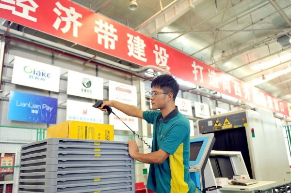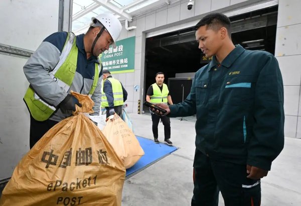 在新疆霍爾果斯國際郵件交換站,中國郵政工作人員(右一)在為即將交換到哈薩克斯坦郵政的郵包掃碼轉(zhuǎn)運(yùn)。據(jù)了解,霍爾果斯國際郵件交換站于2022年7月正式運(yùn)營,以進(jìn)出口物流渠道為支持,為跨境電商產(chǎn)業(yè)鏈上下游提供倉儲(chǔ)和快遞物流綜合解決方案。承運(yùn)中國至中亞多國、俄羅斯以及歐洲國家的出口國際郵件。3年來,累計(jì)國際郵件交換量2026噸(9月11日攝)。新華社記者 李賀 攝