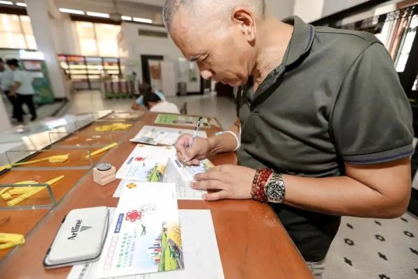 最受矚目的環(huán)節(jié),莫過(guò)于第56屆世界郵政日紀(jì)念封的首發(fā)。紀(jì)念封剛一亮相,便吸引了大批市民駐足圍觀,大家自覺排成整齊的隊(duì)伍,有序等待領(lǐng)??;拿到紀(jì)念封后,又紛紛走向紀(jì)念郵戳區(qū),小心翼翼地為封片蓋上專屬印記,每一個(gè)動(dòng)作都透著對(duì)集郵的珍視。