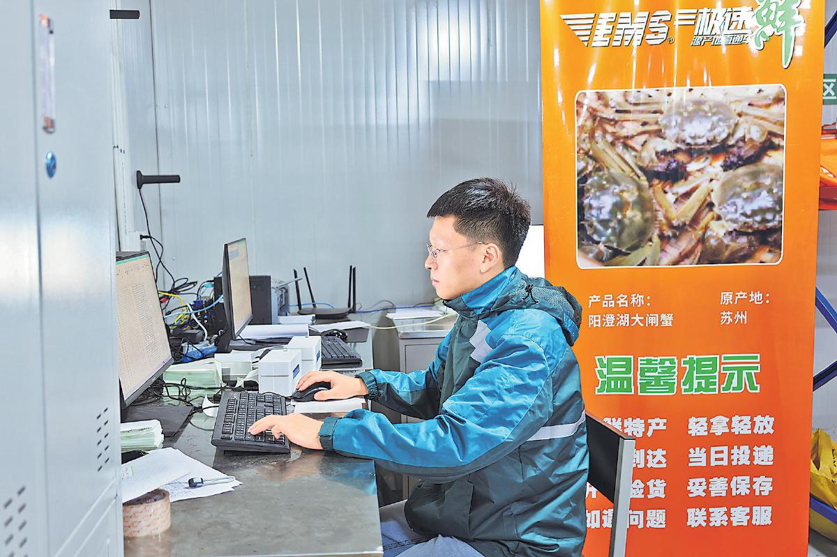 今年,江蘇郵政靈活調(diào)控前置場地作業(yè)時(shí)間,持續(xù)優(yōu)化前置營運(yùn)中心,為陽澄湖大閘蟹寄遞運(yùn)營提供了全方位保障:采用“錯峰出行”策略,強(qiáng)化大閘蟹運(yùn)輸及倉儲保障;加密投遞頻次、延長攬收時(shí)間,實(shí)現(xiàn)全國257個(gè)主要城市次日遞或隔日遞;為蟹農(nóng)提供全天候服務(wù),進(jìn)一步提升了應(yīng)對處理效能。