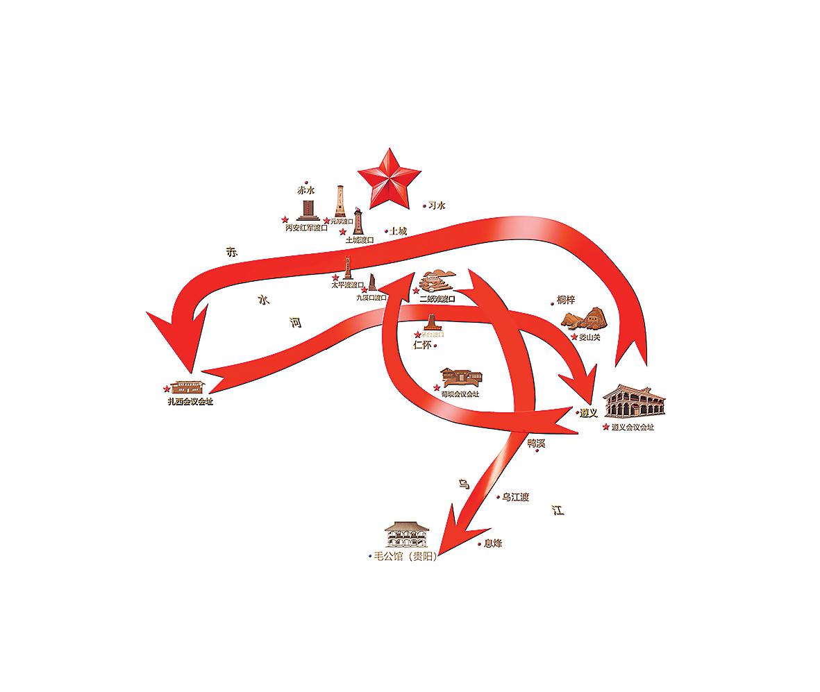 唐云云介紹,將紅軍“一渡赤水”(遵義—土城—扎西)、“二渡赤水”(扎西—太平渡—婁山關(guān)—遵義)、“三渡赤水”(遵義—茍壩—茅臺(tái)—川南)、“四渡赤水”(二郎灘—太平渡—貴陽(yáng))的迂回路線在地圖上連線,驚訝地發(fā)現(xiàn)其天然構(gòu)成了一個(gè)“安”字的輪廓。“我們?cè)凇病诸^上加了一顆五角星,這既是革命精神的象征,也含平安的寓意。希望游客看到時(shí),能想到當(dāng)下的幸福生活來(lái)之不易?!碧圃圃普f(shuō)。