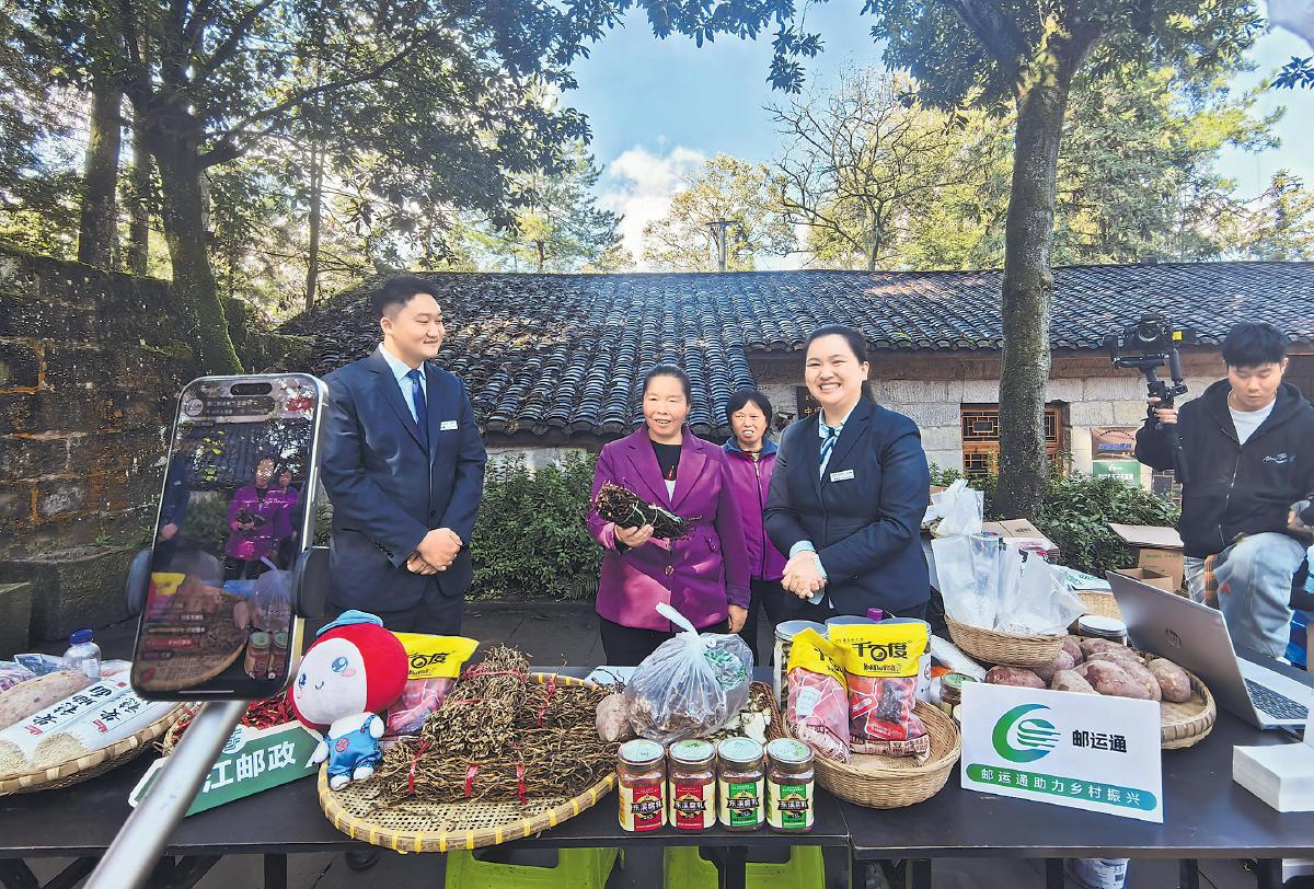 近日,在重慶市綦江區(qū)中壩村村委會(huì)的小院里,郵政工作人員與村民圍在擺滿(mǎn)干辣椒、干貨、特色醬料的展臺(tái)前,對(duì)著手機(jī)直播鏡頭熱情推介當(dāng)?shù)睾梦铩T谌型七M(jìn)“郵運(yùn)通”工作的助力下,綦江區(qū)郵政分公司開(kāi)通“郵車(chē)到我家”專(zhuān)線,并在今年4月聯(lián)合區(qū)商務(wù)委構(gòu)建“產(chǎn)地首發(fā)—冷鏈運(yùn)輸—終端配送”全鏈條服務(wù)體系,實(shí)現(xiàn)山鄉(xiāng)特產(chǎn)“當(dāng)日采收、次日達(dá)城”,為農(nóng)村電商發(fā)展提供有力支撐。